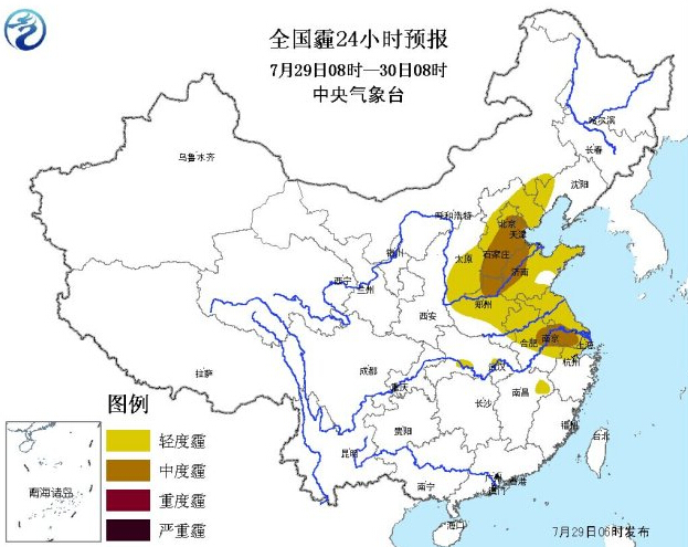 据中央气象台最新消息,今天白天,京津冀大部地区气象条件不利于空气中污染物及水汽扩散,有中到重度污染天气,较昨日有所加重。29日夜间~30日,受降水影响上述区域以良至轻度污染为主。