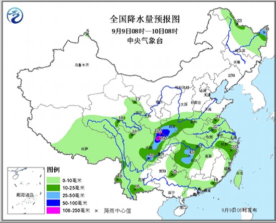 人民网北京9月9日电 (杨翼)昨日起,西北地区东部、四川盆地等地的降雨明显增强。监测资料显示,昨日白天到夜间,四川盆地中部和北部、陕西关中、河南西部等地出现中到大雨,局地暴雨。