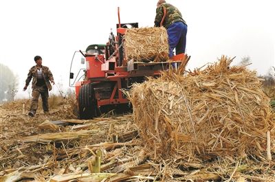 这一运作模式指的是,农机合作社按每亩地30元付给农户报酬,农户不必再费时费力整理秸秆,废弃的秸秆反而有了一份收益。 “如果一家农户有10亩玉米地,就能得到300元纯利,农民挺知足的。“张书安介绍,从他去年试点的情况看,除了一些自家养牛的农户将玉米秸秆作为饲料自家消化外,几乎90%的农户都乐意让张书安的机器开进农田,进行秸秆捡拾。