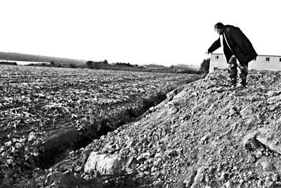 突出在土层外的水泥石块指向紧邻的刚收割的玉米地,高出地面3米多。村民介绍称,这块垃圾地原本与一旁的玉米地齐高。