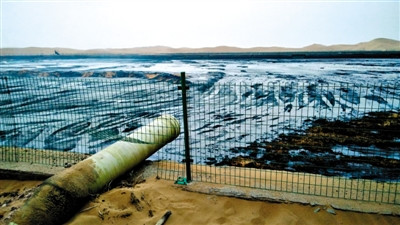 此前,记者发现有裸露在地表的黑色排污管道,从工业园区延伸到沙漠腹地的晾晒池。目前这根3.2公里长的排污管道已被拆除。