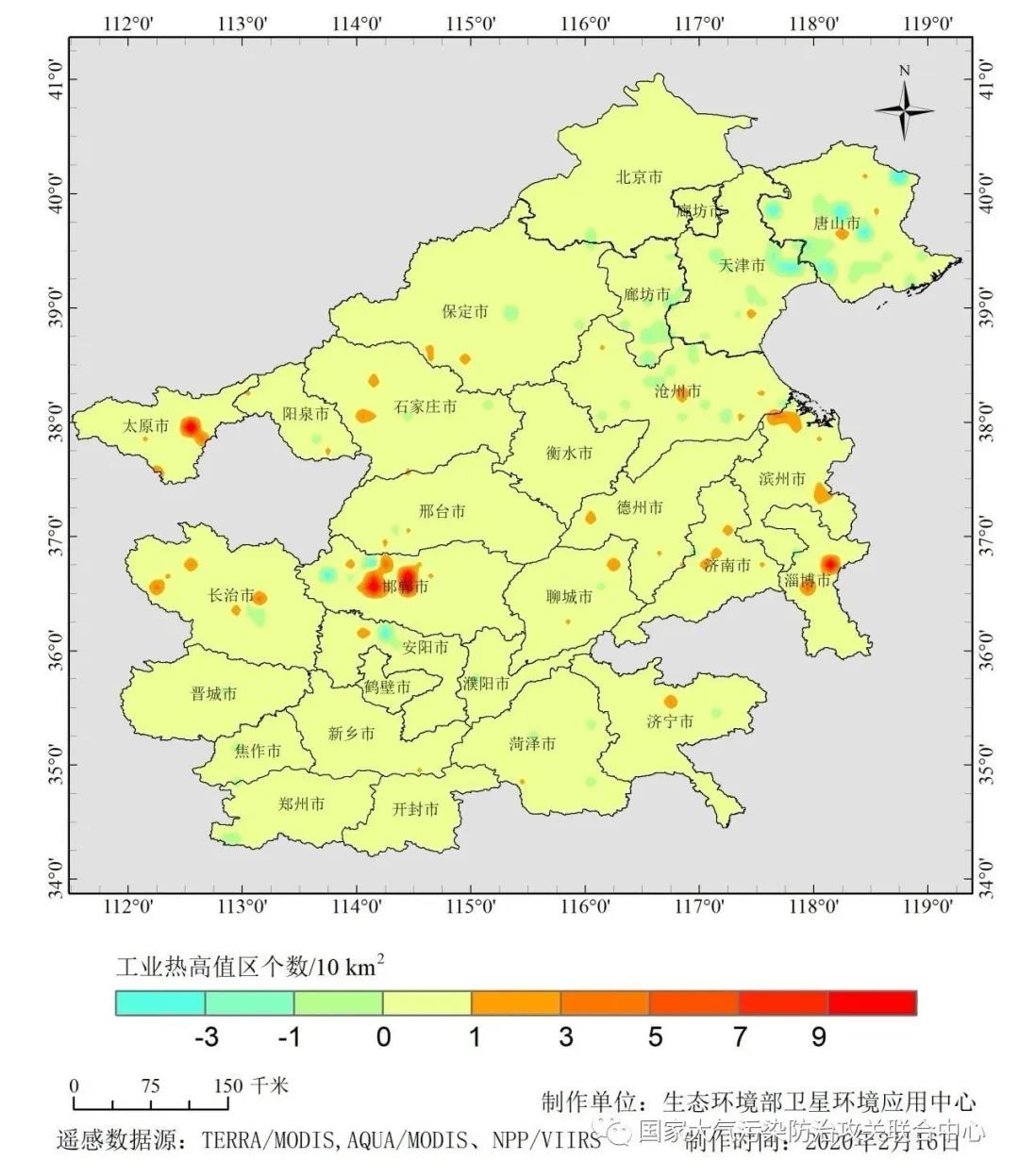 针对今年春节以来京津冀及周边地区工业污染源变化情况,国家大气污染防治攻关联合中心邀请生态环境部卫星环境应用中心有关专家,利用卫星遥感数据分析解读近期京津冀及其周边地区工业活动水平变化。