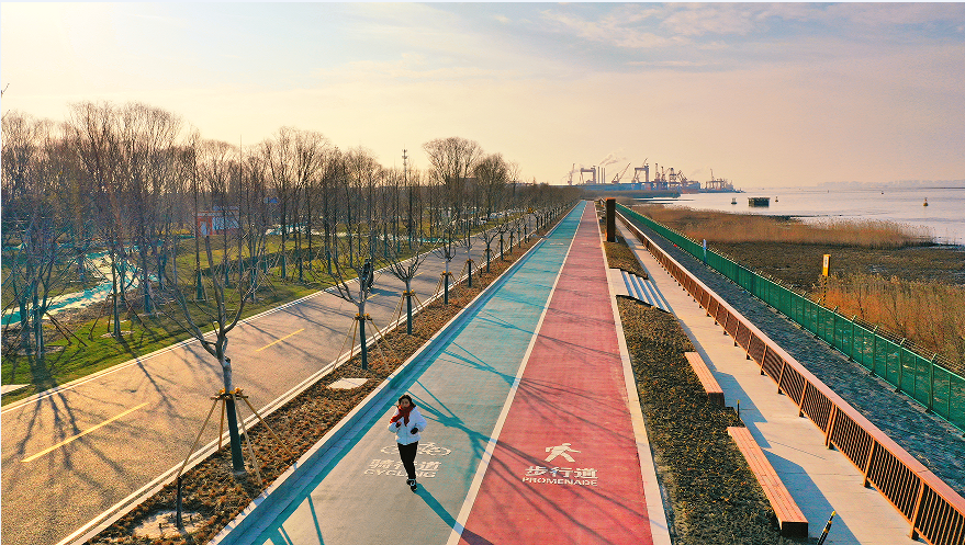 漫步在位于江苏省南通经济技术开发区的洪港滨江生态园,总有一处美景,让人感叹不虚此行。从昔日芦草丛生、流槽纵横的江边荒滩,晴天灰茫茫、雨天水汪汪的烂泥路,水体黑臭、污水横流的偷排泥潭,到如今纵横交错、四通八达的平坦大道和鱼翔浅底、水清岸绿的城市绿地。浩浩荡荡的长江见证着一代代老洪港人接棒前行,追青逐绿,不断绘就生态文明新画卷。