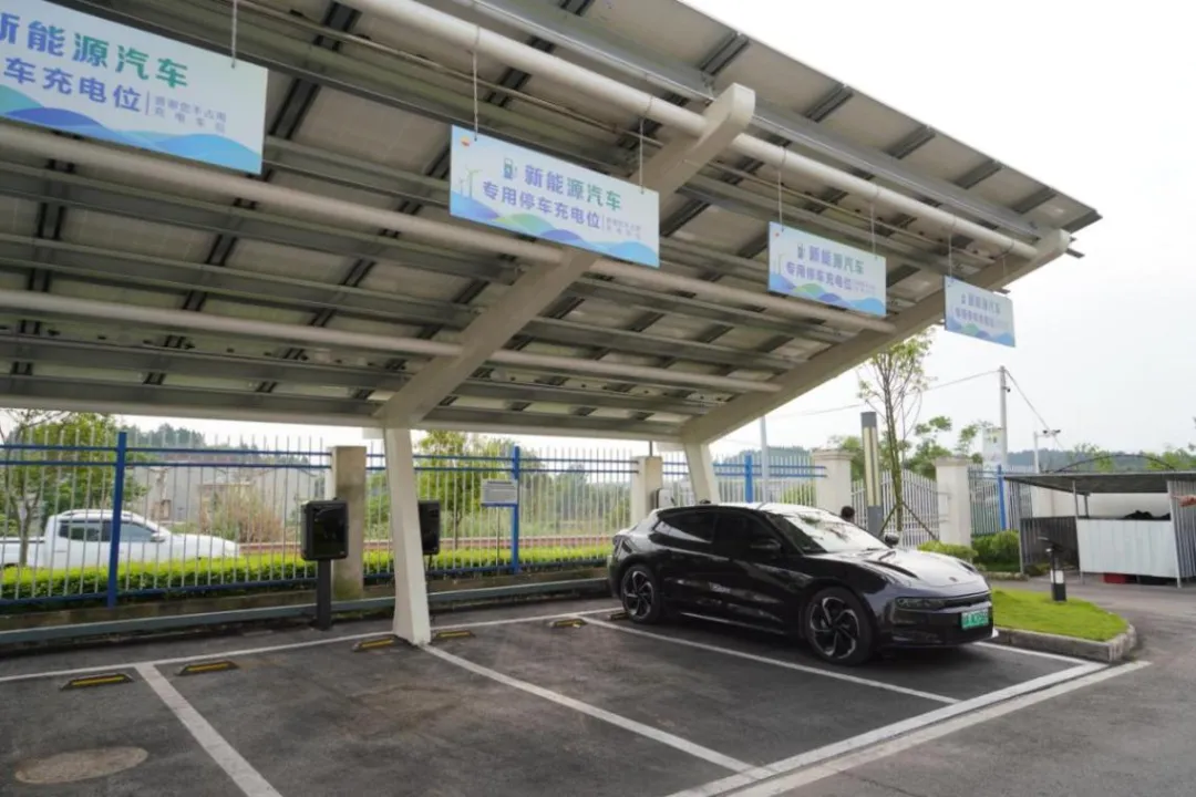 公寓楼下,安岳净化公司员工黎一民把车停进车位,绕到车后的充电桩,取下充电枪接入充电接口。他说:“我家住成都,每周开车上班来回约400公里。以前开油车,每月单加油费就要花费好几百元。现在换成电车,充我们厂自己生产的光伏‘绿电’,能节省不少开支,也更绿色环保。”