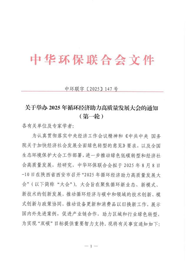 关于举办2025年循环经济助力高质量发展大会的通知(第一轮通知)