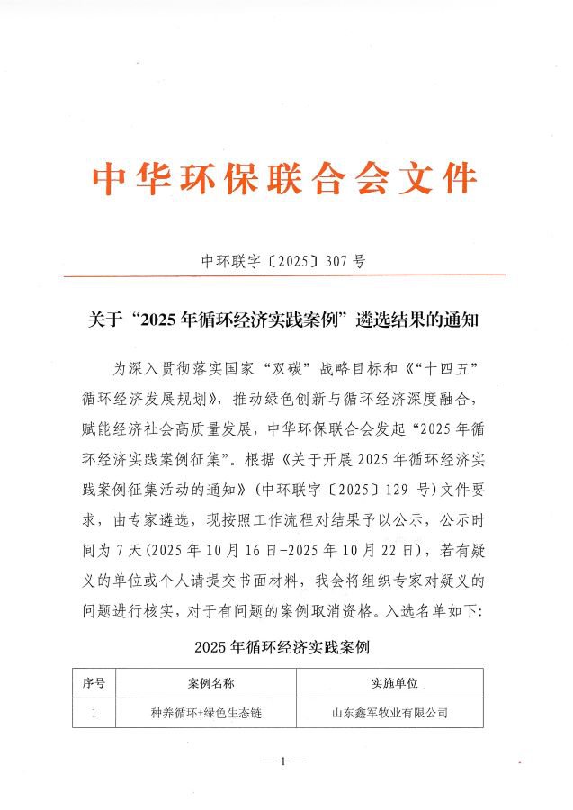 关于“2025年循环经济实践案例征集” 遴选结果的通知